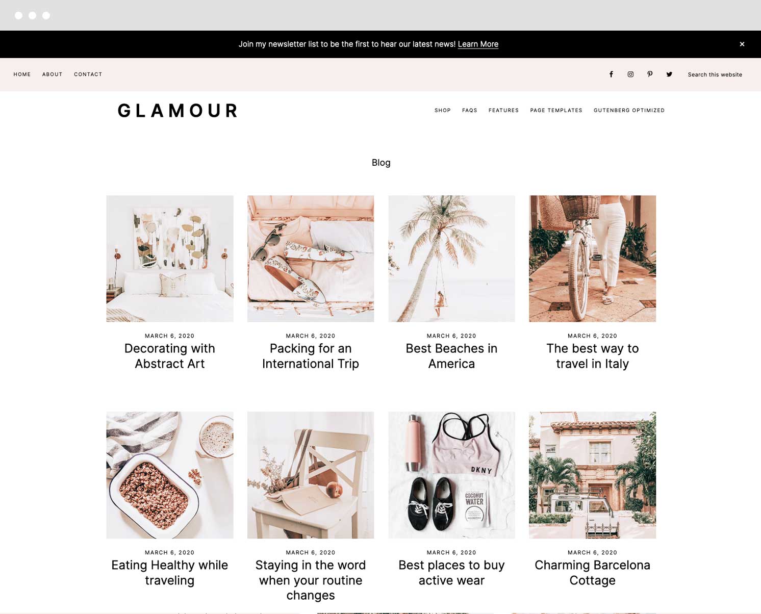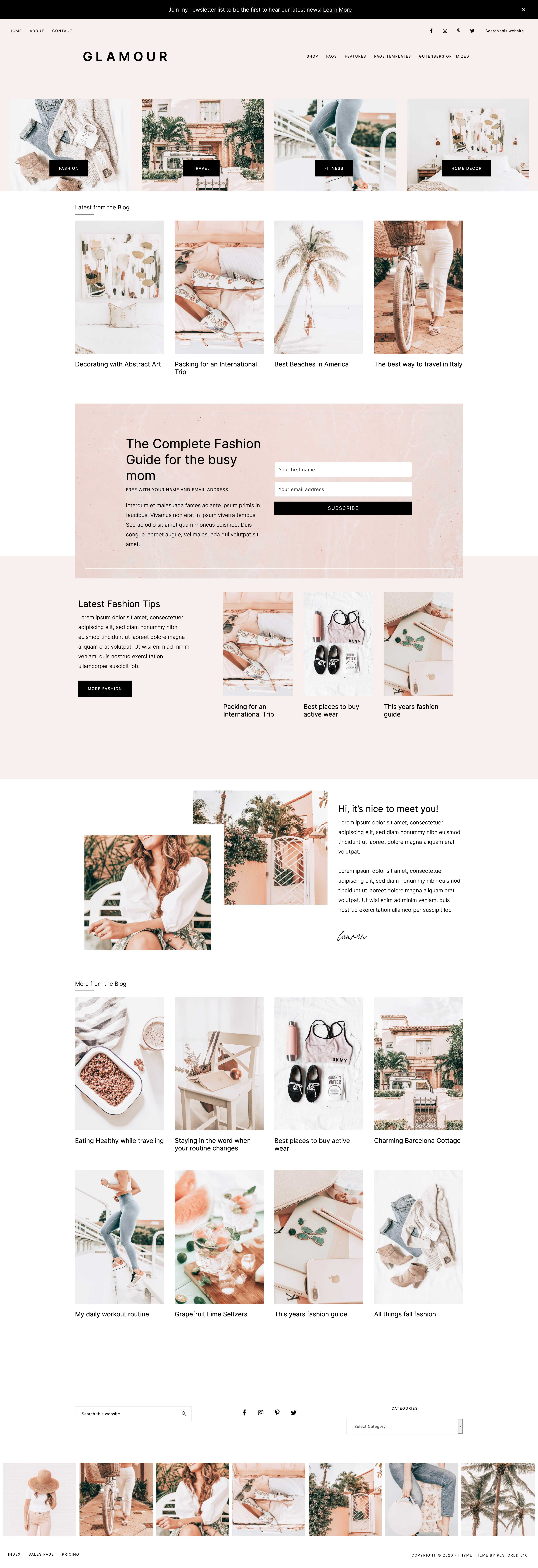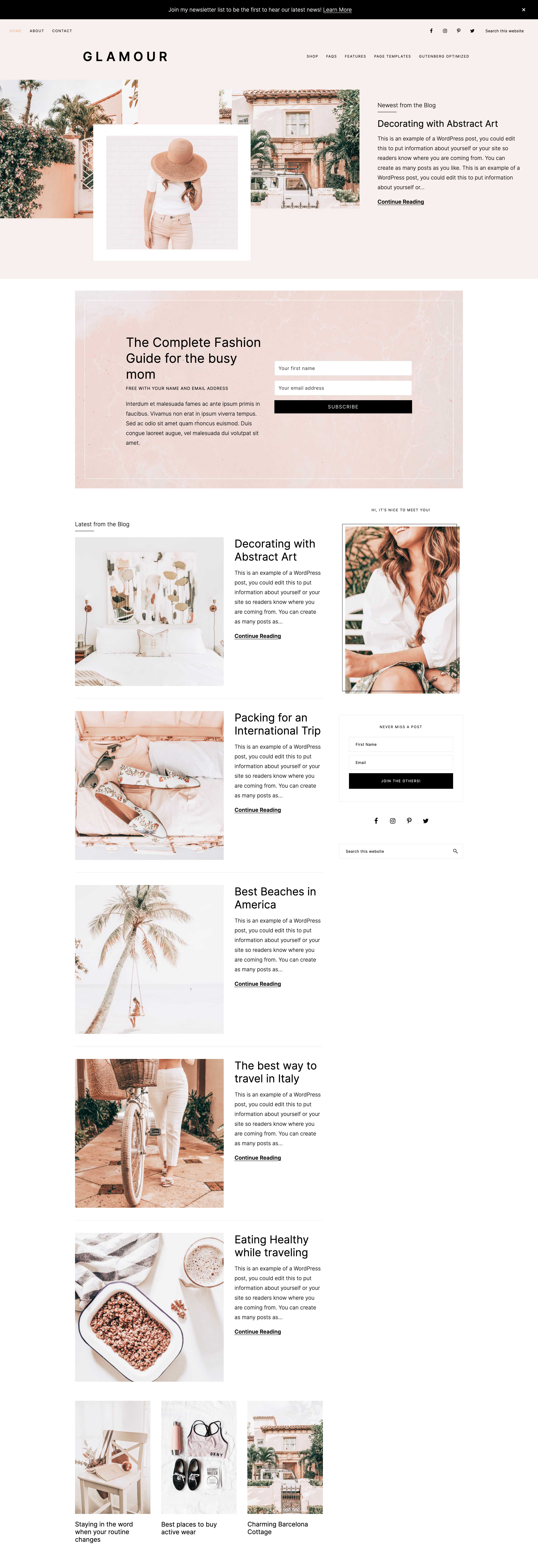 All page designs, including home page options, are built using the Gutenberg editor. This means you aren’t limited to just what you see right here in the demo. You can edit, remove, add… anything you wish! You can truly make Glamour exactly what you need it to be for your blog!